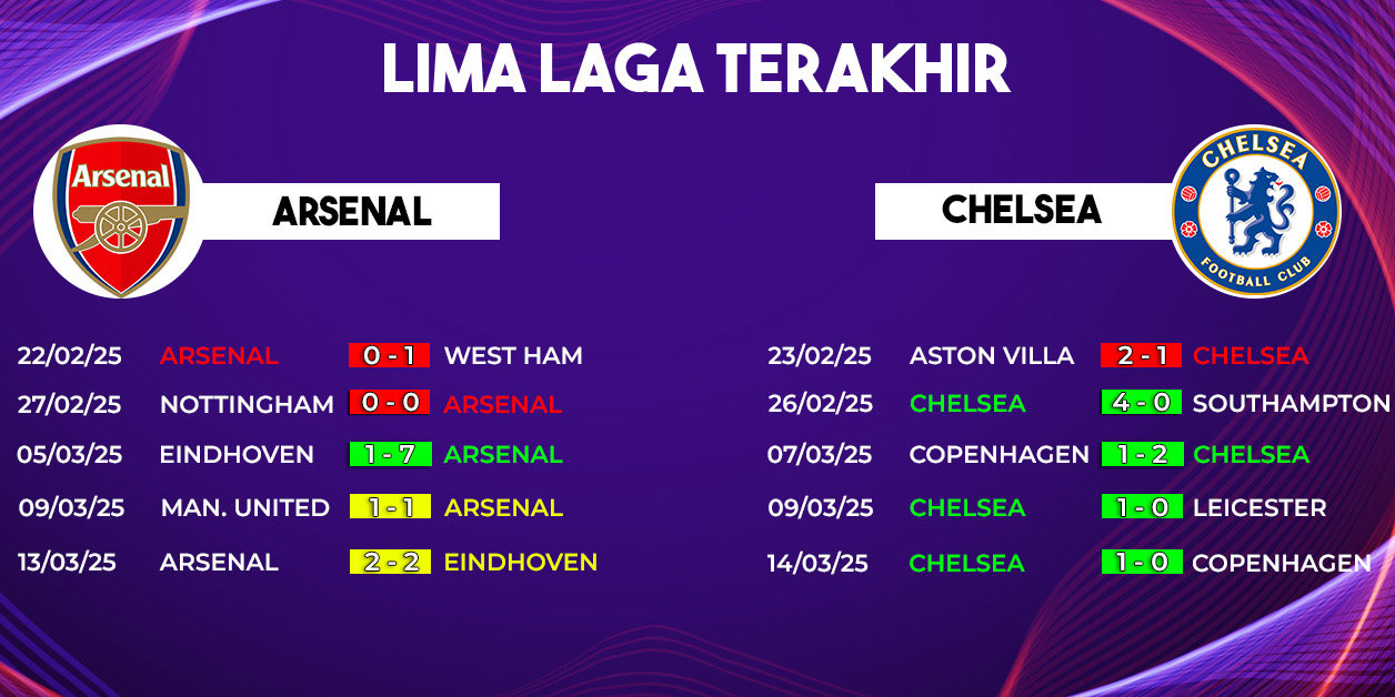 Kedua tim datang dengan semangat tinggi setelah berhasil melaju ke perempat final kompetisi Eropa. Arsenal sukses menyingkirkan PSV Eindhoven dengan agregat mencolok 9-3 di babak 16 besar Liga Champions. Sementara itu, Chelsea juga melaju dengan meyakinkan setelah mengeliminasi FC Copenhagen dengan agregat 3-1 di Conference League.