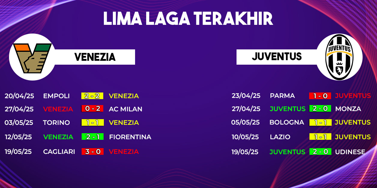 Dalam pertemuan terakhir kedua tim di Serie A, Juventus unggul secara statistik. Namun, Venezia pernah merepotkan mereka di kandang sendiri. Faktor kandang bisa menjadi senjata Venezia, terutama di tengah tekanan tinggi dari para pendukung mereka.